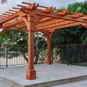 Giàn hoa giả gỗ, hay còn gọi là pergola, được làm từ các loại vật liệu giả gỗ như xi măng, nhựa composite hoặc nhựa giả gỗ. Sản phẩm này được thiết kế để mang lại vẻ đẹp tự nhiên, sang trọng như gỗ thật nhưng với khả năng chịu được các tác động khắc nghiệt của thời tiết mà gỗ tự nhiên không thể sánh kịp.